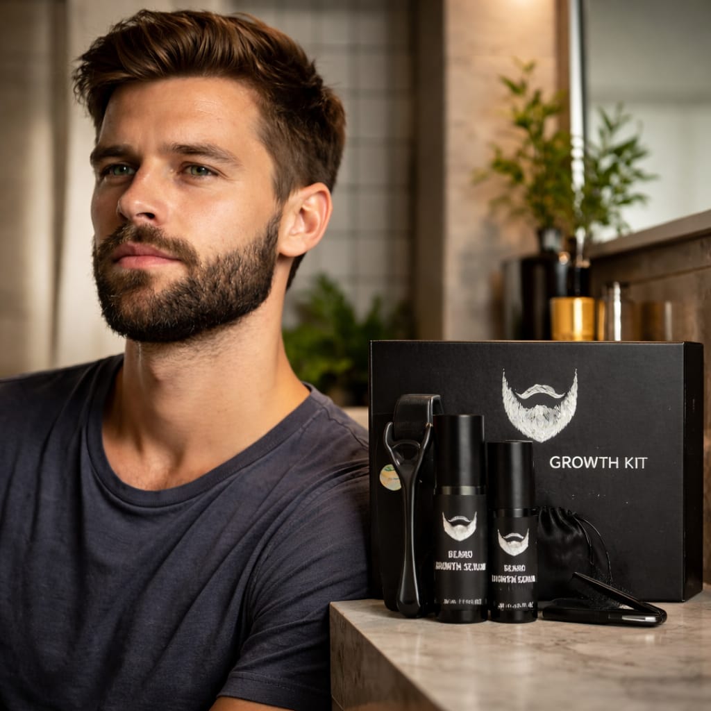 "Ma barbe est enfin dense après 4 semaines. Kit complet et efficace!"